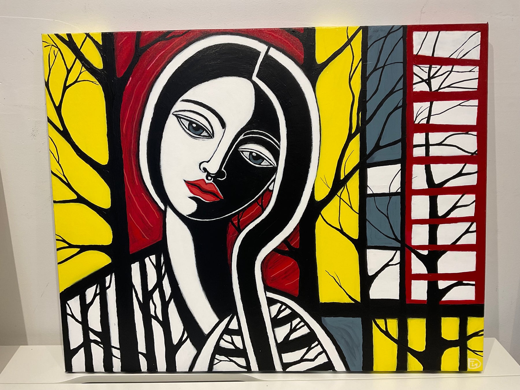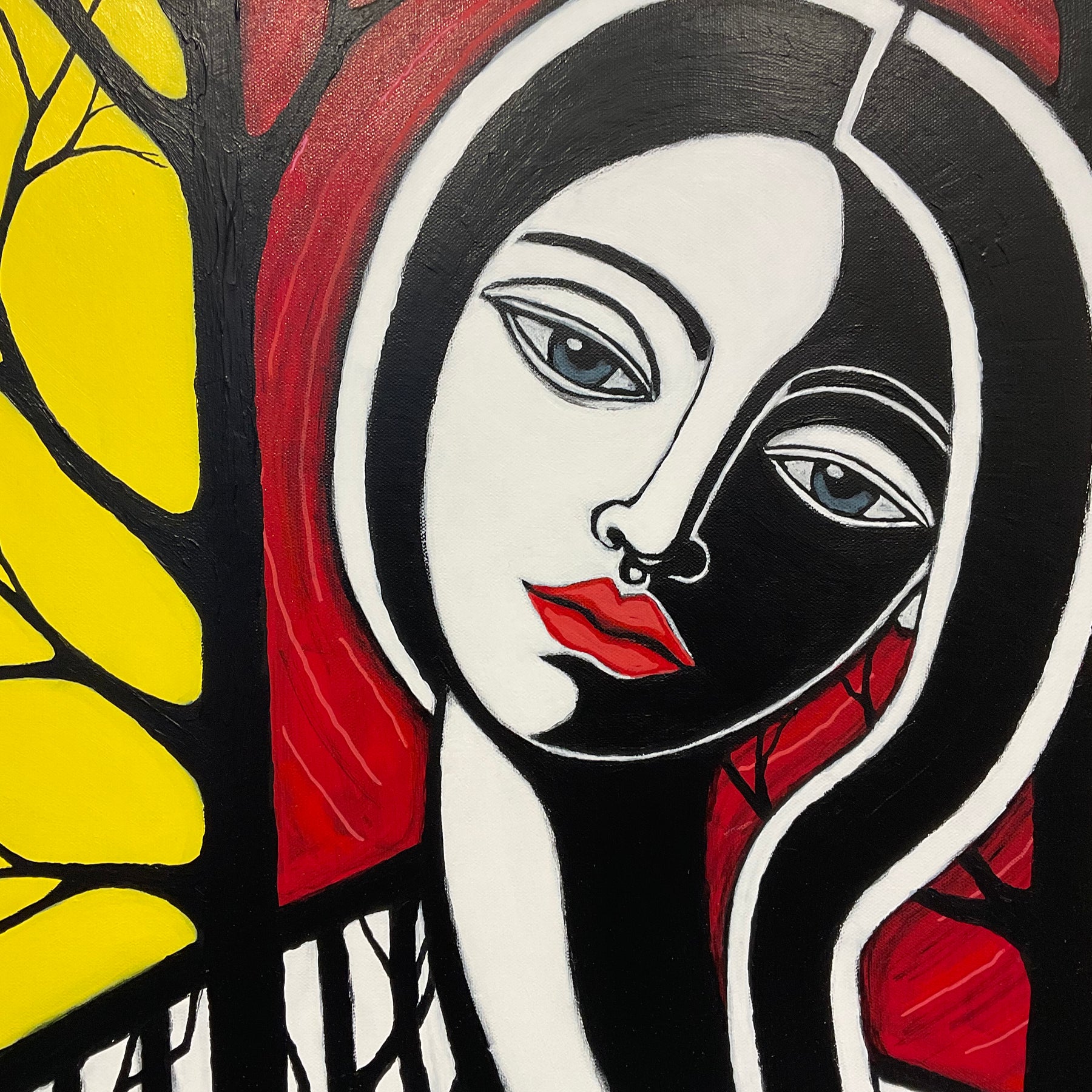 MORIKO is a striking original acrylic painting that merges pop art sensibility with contemplative Asian aesthetics. This artist-signed work features a captivating portrait of a young woman rendered in abstract form, nestled within a dreamlike forest landscape. The composition balances bold, graphic elements characteristic of pop art with the subtle spiritual undertones of Eastern artistic tradition, creating a visually compelling dialogue between cultures and styles. The interplay of vibrant color and expressive brushwork draws the viewer into an intimate yet expansive visual experience. Perfect for collectors seeking meaningful contemporary art that transcends conventional portraiture, MORIKO stands as a sophisticated statement piece that rewards sustained contemplation and conversation.
